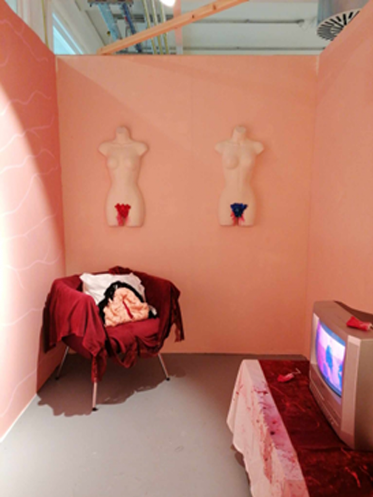 I hope by displaying this topic in a mundane setting, like a living room (this was at the end of covid so everyone got very familiar with their livingroom), it would express the normalisation of vaginas.