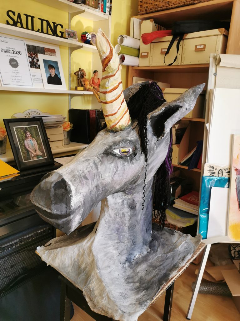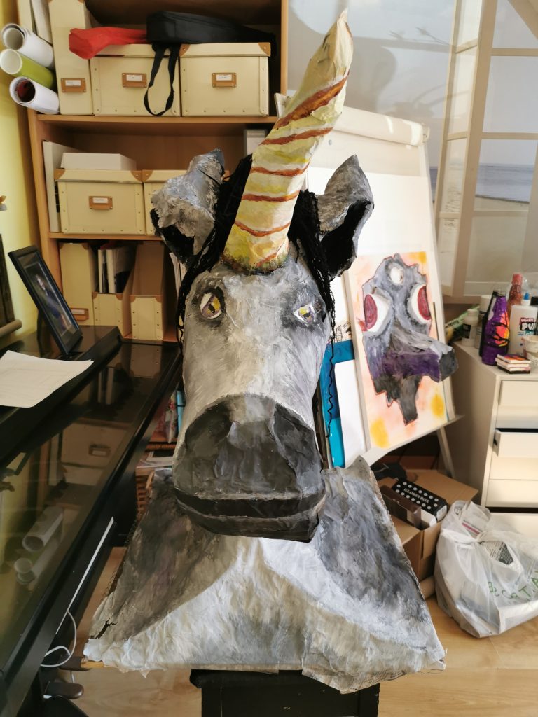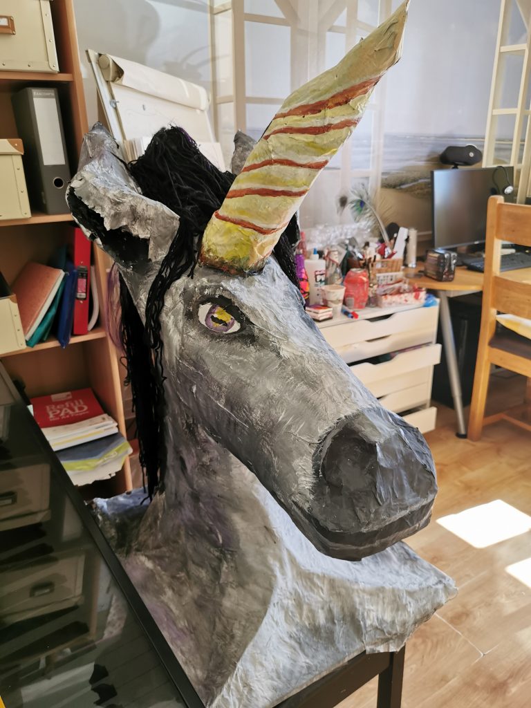 The Darkside Of Unicorns, paper mâché, Acrylic paint and chicken wire, 2019